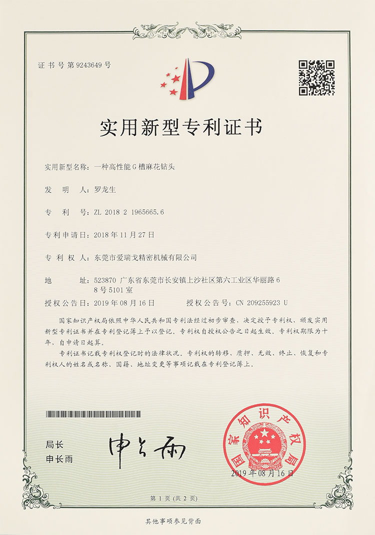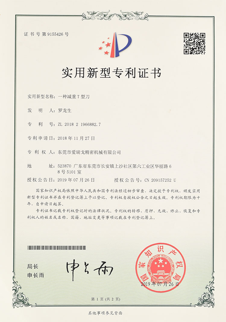 實(shí)用新型專利證書